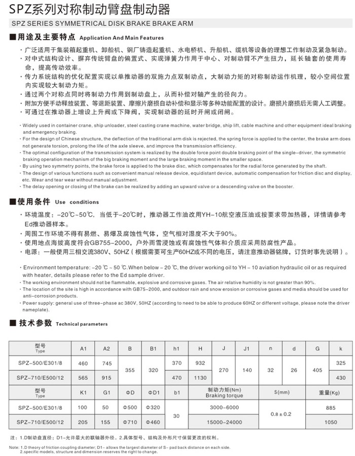 SPZ系列對稱制動臂盤氣動鉗盤制動器